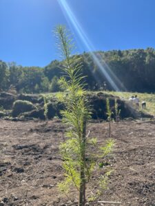 今回は新たにカラマツの苗木400本を植樹し、残念ながら定着しなかった箇所へ300本の補植も行いました。